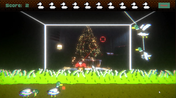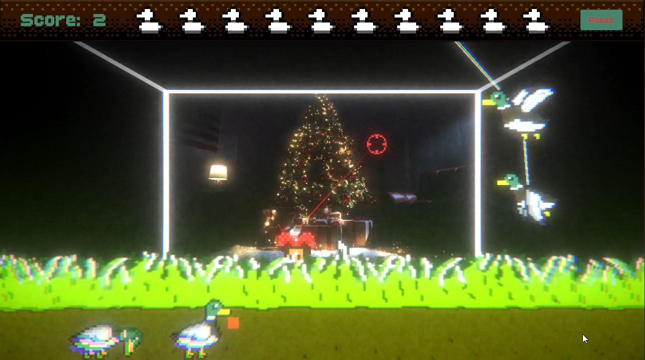 Hover over the ducks to see their trajectory. Click on them to launch into the air or change directions. Once they leave the grass the hunter will try to shoot them. They must reload after three shots.